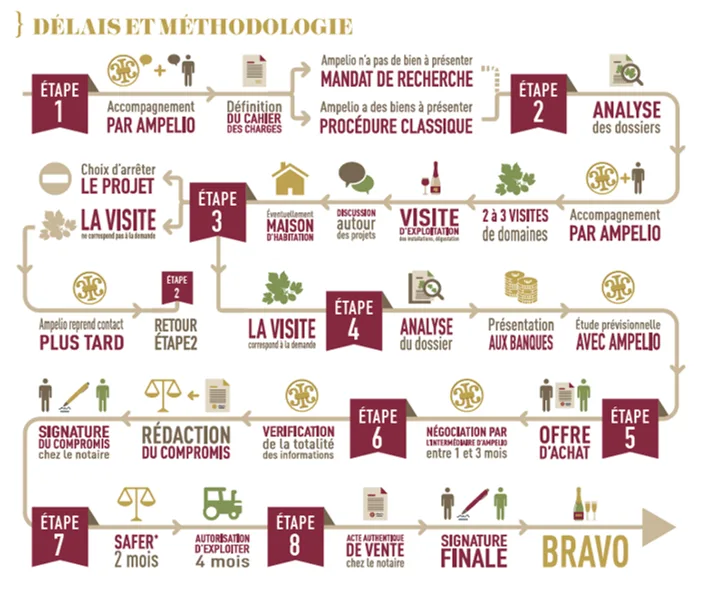 En huit étapes voici le déroulement d’une reprise de domaine viticole.